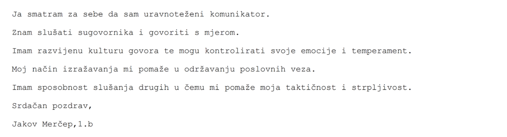 Ovim smo zadatkom naučili kako pravilno komunicirati i poštovati sugovornika – što je temelj svake uspješne poslovne komunikacije.