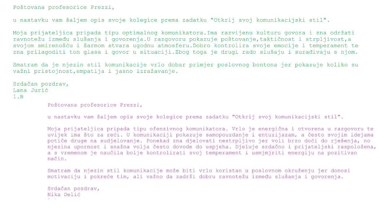 Ovim smo zadatkom naučili kako pravilno komunicirati i poštovati sugovornika – što je temelj svake uspješne poslovne komunikacije.